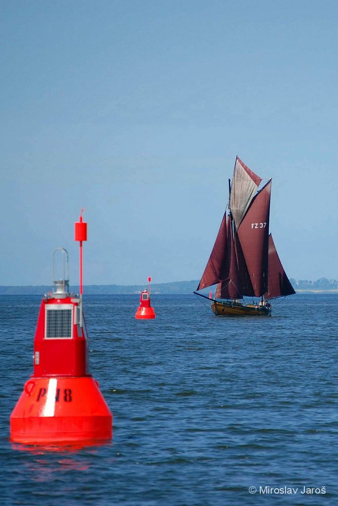 a potom doprava, úzkým vybójkovaným kanálem do rybářského přístavu Thiessow.